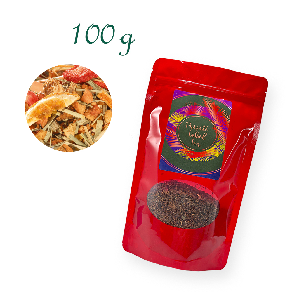 Appledream In Sommerlaune Tee - Verpackung: Aluverbundfolien-Standbodenbeutel, Aromabeutel, rot, mit Fenster, Inhalt 100 g