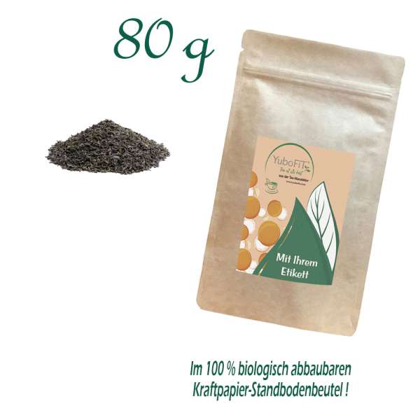 BIO China Chun Mee Tee - Verpackung: Standbodenbeutel Medium Plus, Kraftpapier, aluminiumfrei, Inhalt 80 g