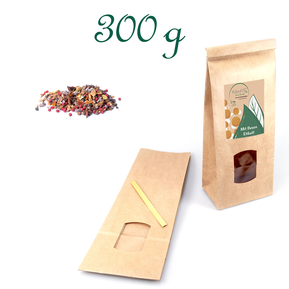 BIO Gewürztee Schoko-Chai - Verpackung: Blockbodenbeutel Big, Kraftpapier, Inhalt 300 g