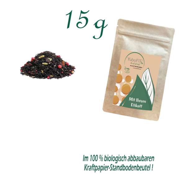 BIO Schwarzer Tee Rote Verführung - Verpackung: Standbodenbeutel Extra Small, Kraftpapier, Inhalt 15 g