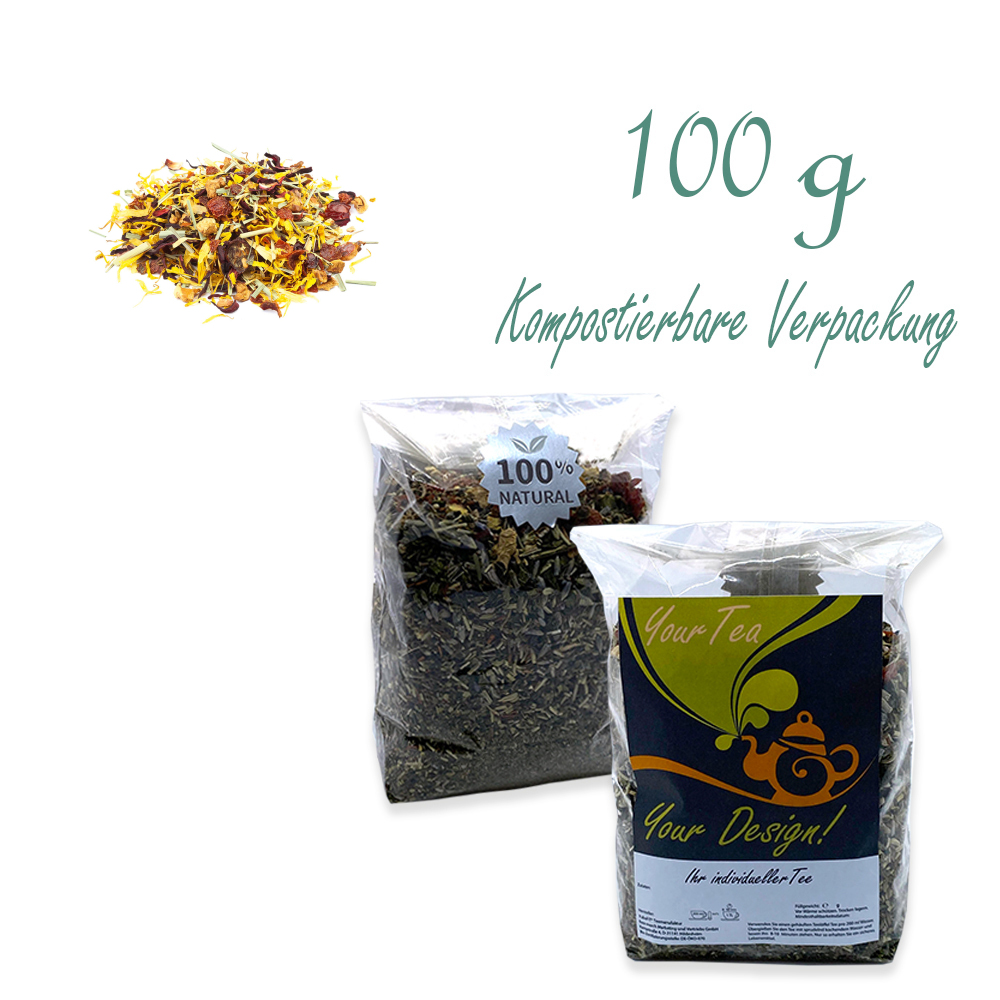 BIO Tee Icetea SUMMER MEETS CUTE - Verpackung: Kompostierbarer Zellglas-Beutel, Geprägtes Verschluss-Siegel aus Zuckerrohrpapier. Komplett abbaubar. Inhalt 100 g