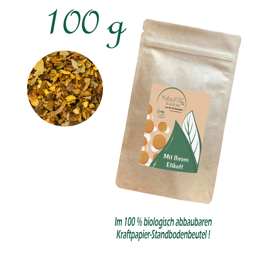 Bio Turmeric Lemon Apple Tee - Verpackung: Standbodenbeutel Big, Kraftpapier, aluminiumfrei, Inhalt 100 g