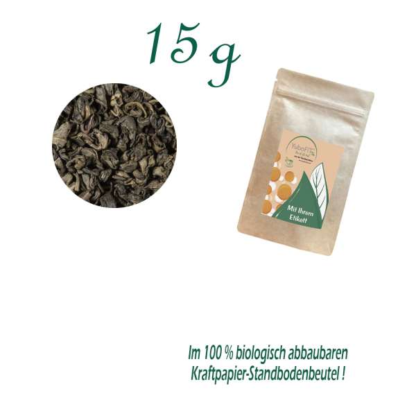 China GUNPOWDER Tee - Verpackung: Standbodenbeutel Mini, Kraftpapier, Inhalt 15 g