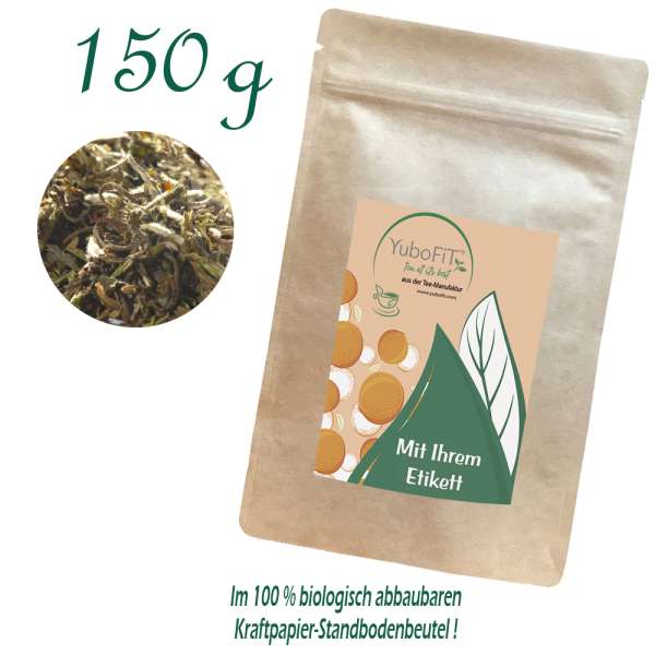 China Pai Mu Tan 1st Grade White Peony Tee - Verpackung: Standbodenbeutel Maxi, Kraftpapier, Inhalt 150 g