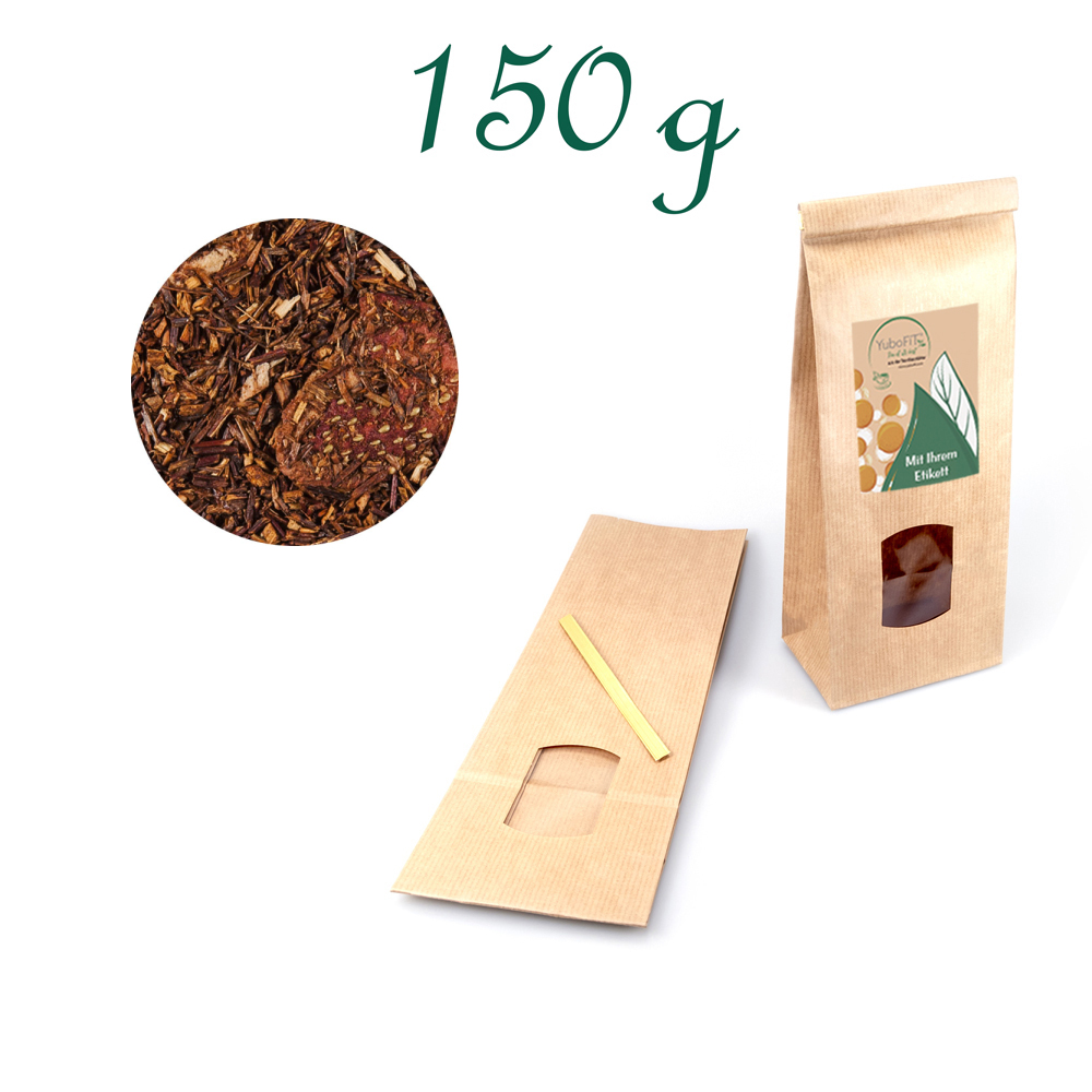 Erdbeer-Sahne Tee - Verpackung: Blockbodenbeutel Medium, Kraftpapier, Inhalt 150 g
