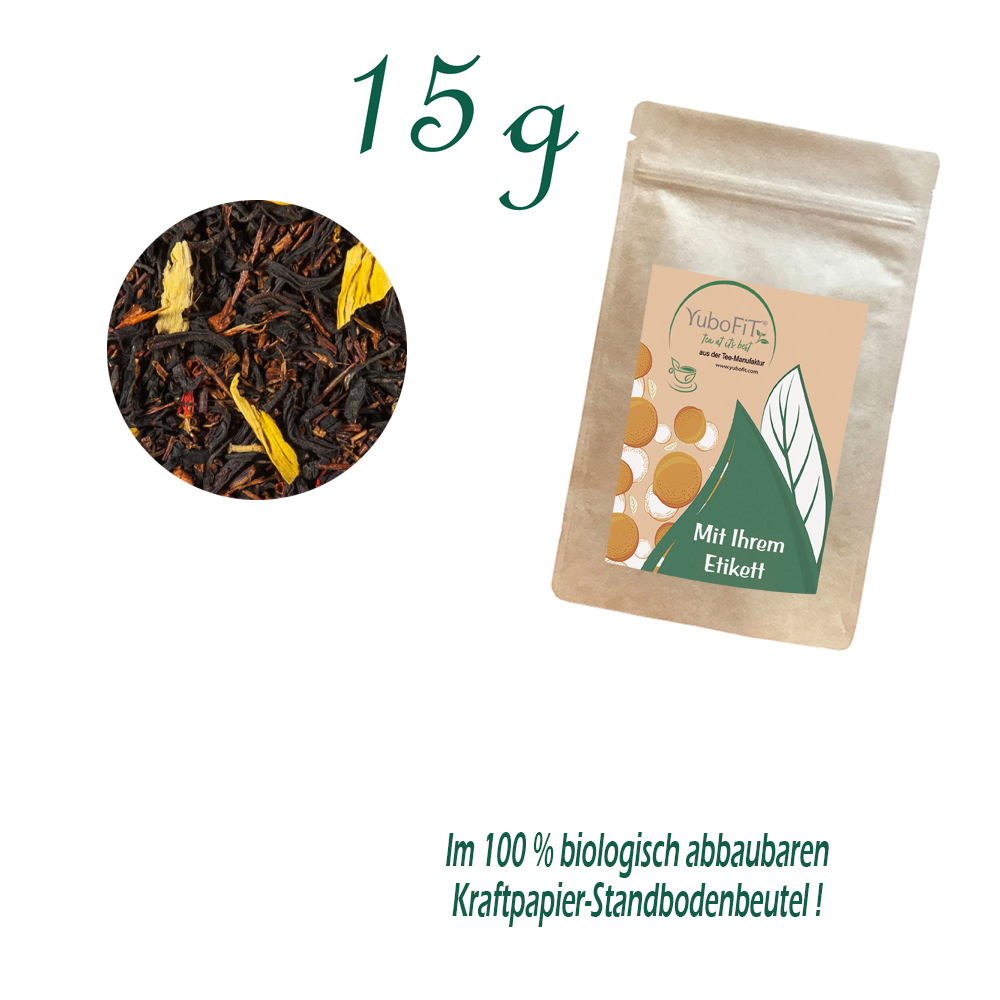 Kräftig vereint siegt das Zusammenspiel aus Rooibos und Schwarztee mit Orangen- und Zimtgeschmack.