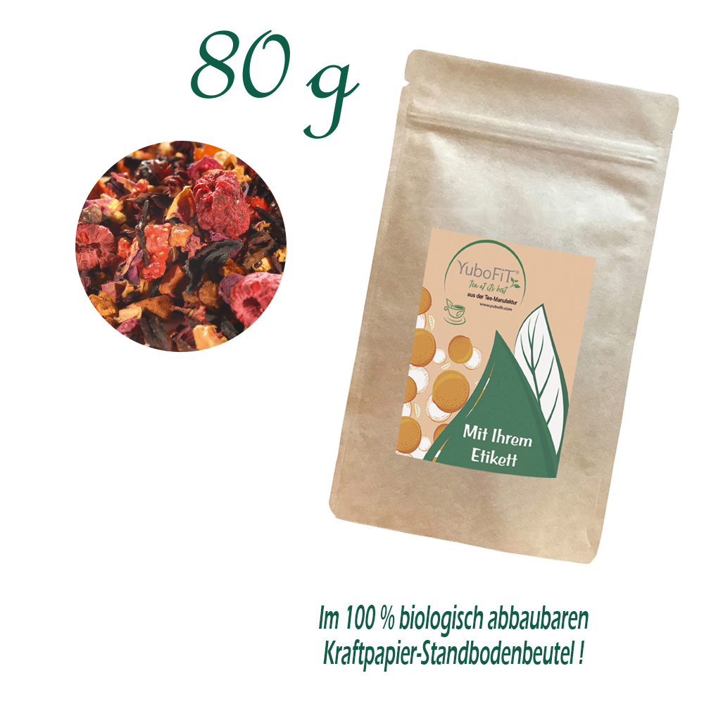 Früchtetee CHEER UP - Verpackung: Standbodenbeutel Medium Plus, Kraftpapier, aluminiumfrei, Inhalt 80 g
