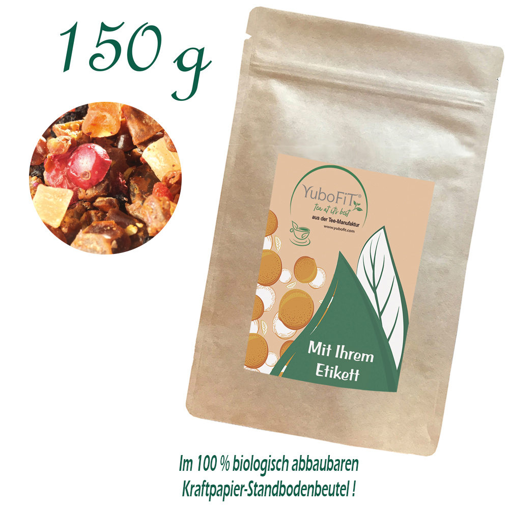 Früchtetee Dattelzauber Pitahaya-Cranberry - Verpackung: Standbodenbeutel Maxi, Kraftpapier, Inhalt 150 g