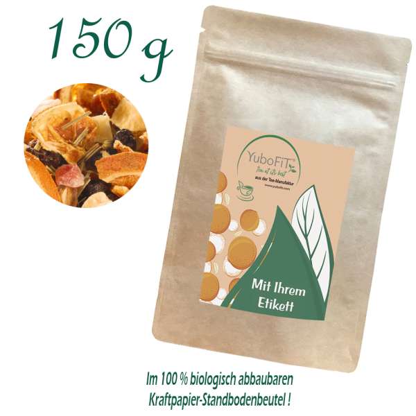 Früchtetee Dattelzauber Südfrucht - Verpackung: Standbodenbeutel Maxi, Kraftpapier, Inhalt 150 g