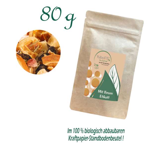 Früchtetee Dattelzauber Südfrucht - Verpackung: Standbodenbeutel Medium Plus, Kraftpapier, aluminiumfrei, Inhalt 80 g