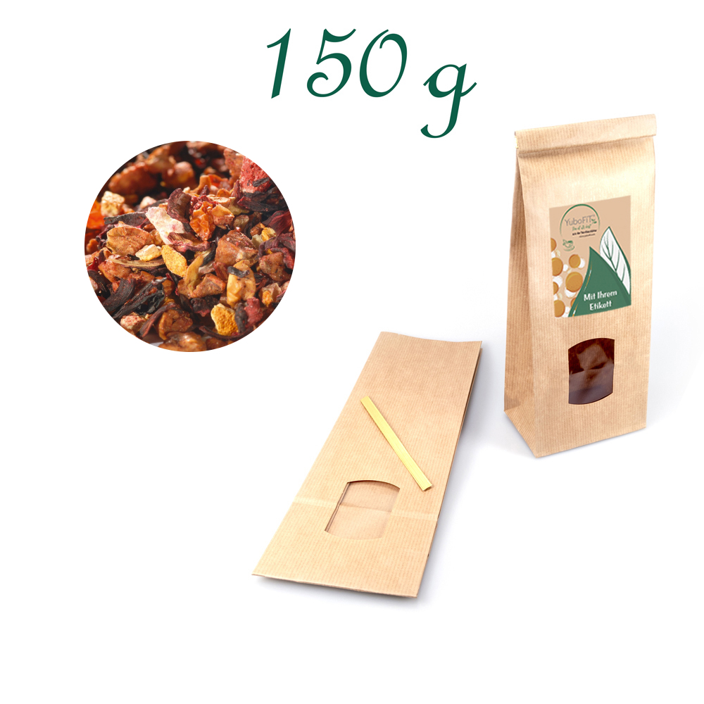 Früchtetee ERDBEER-SAHNE - Verpackung: Blockbodenbeutel Medium, Kraftpapier, Inhalt 150 g