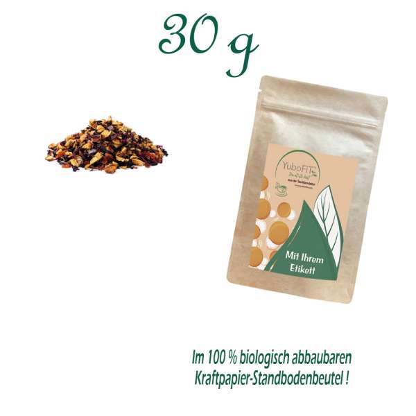 Früchtetee PFIRSICH-APRIKOSE - Verpackung: Standbodenbeutel Small, Kraftpapier, Inhalt 30 g