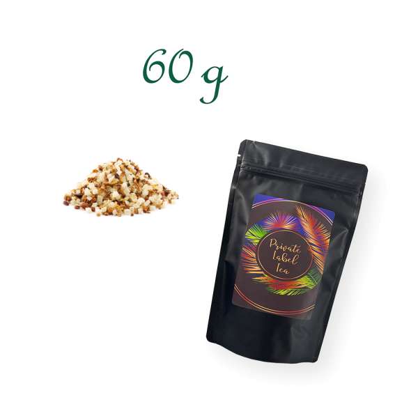 Früchtetee SECRET MEETING Bergamotte - Pink Grapefruit - Verpackung: Standbodenbeutel, Aromabeutel, matt-schwarz, ohne Fenster, Inhalt 60 g