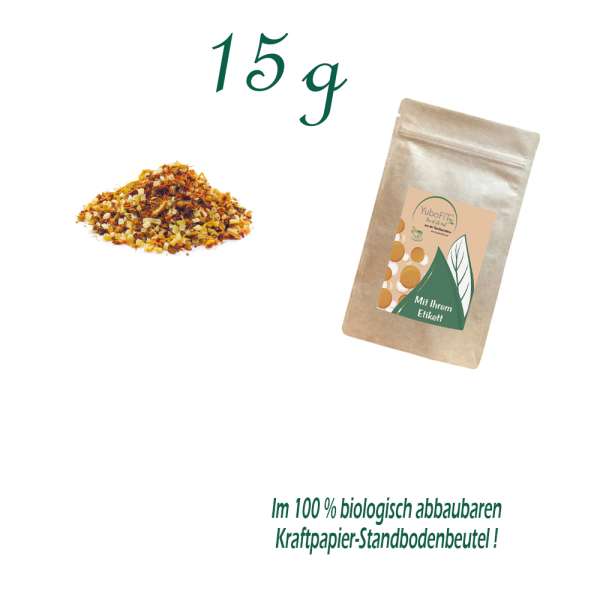 Früchtetee TROPICANA - Verpackung: Standbodenbeutel Mini, Kraftpapier, Inhalt 15 g