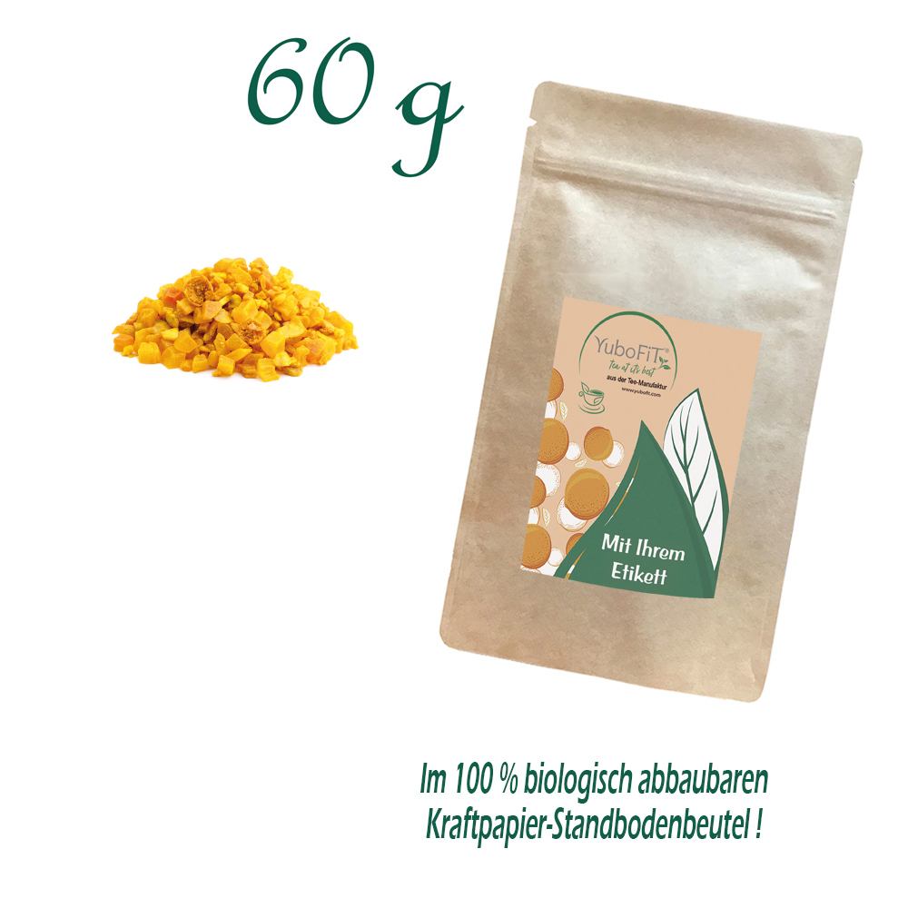 Früchtetee YELLOW MAGIC - Verpackung: Standbodenbeutel Medium, Kraftpapier, Inhalt 60 g