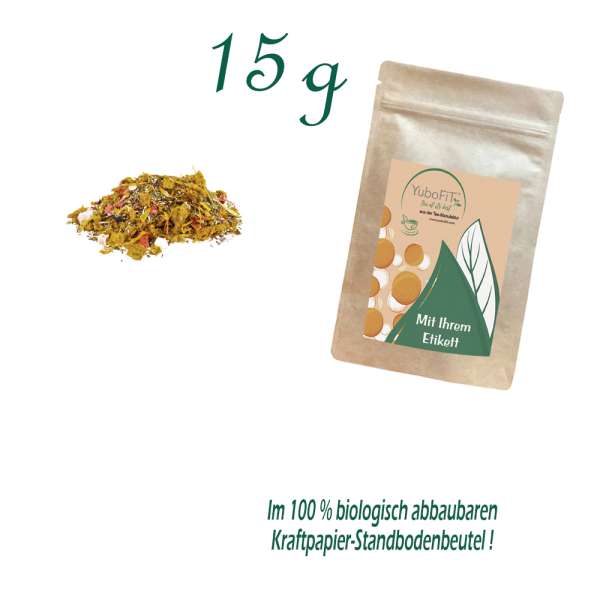 Grüner Rotbuschtee TEMPLE Of MONEY - Verpackung: Standbodenbeutel Extra Small, Kraftpapier, Inhalt 15 g