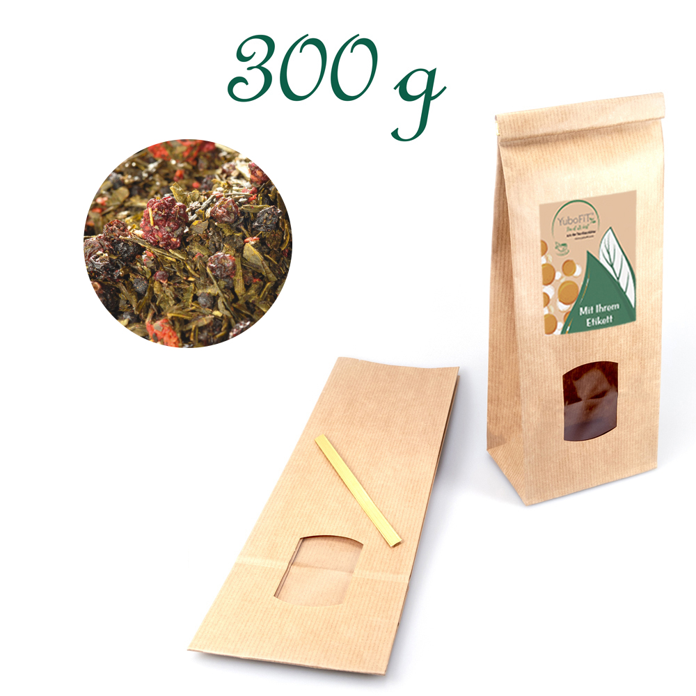 Grüner Tee FRUIT GARDEN - Verpackung: Blockbodenbeutel Big, Kraftpapier, Inhalt 300 g