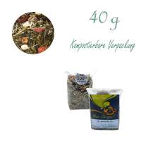 Zutaten: Apfelstücke, Grüner Tee (20%), Korinthen, Kokosnusschips (12%), Moringablätter, Aroma, Lavendelblüten, Malvenblüten.