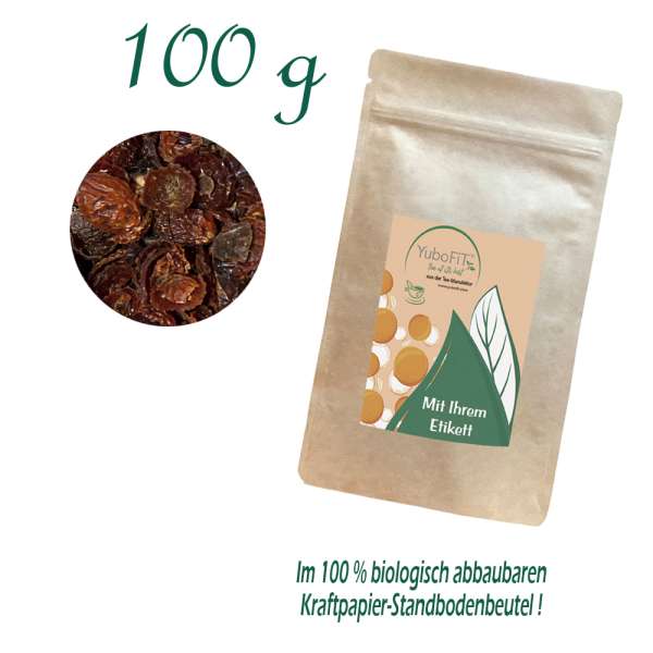Hagebuttenschalen Tee - Verpackung: Standbodenbeutel Big, Kraftpapier, aluminiumfrei, Inhalt 100 g