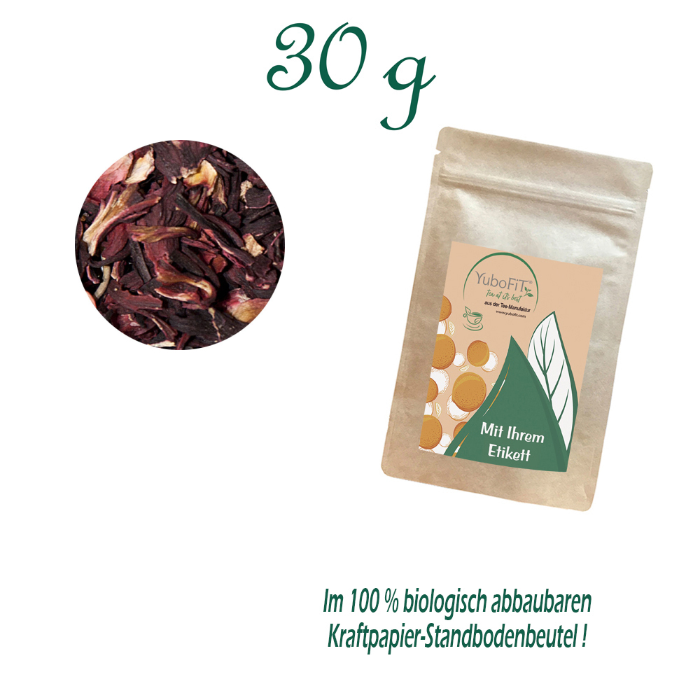 Hibiskusblüten Tee - Verpackung: Standbodenbeutel Small, Kraftpapier, Inhalt 30 g
