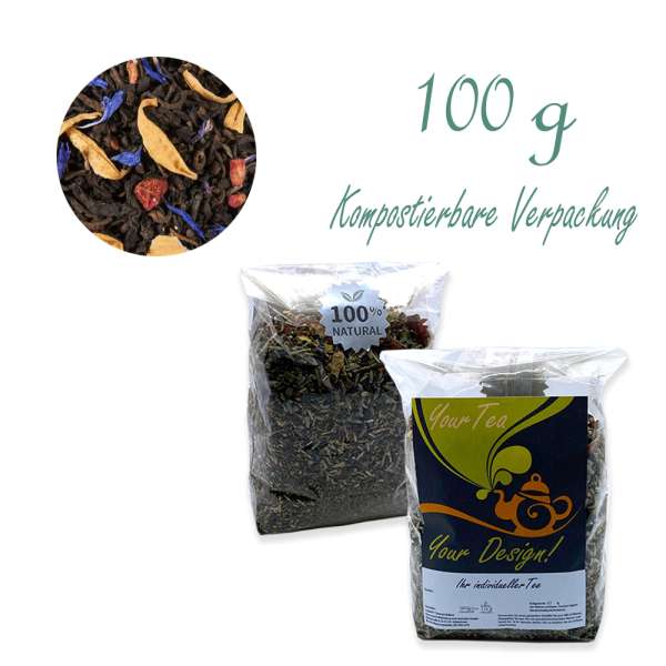 Pu Erh Tee - Tee mit spezieller Fermentation, Orangenblüten, Kornblumenblüten, Himbeerstücke, Aromen