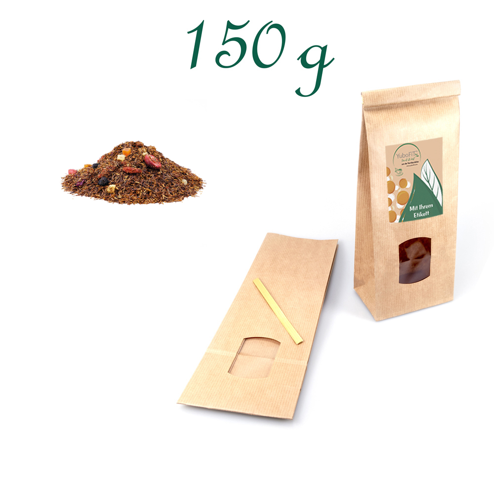 Rotbuschtee Goji-Cranberry-Granatapfel - Verpackung: Blockbodenbeutel Medium, Kraftpapier, Inhalt 150 g