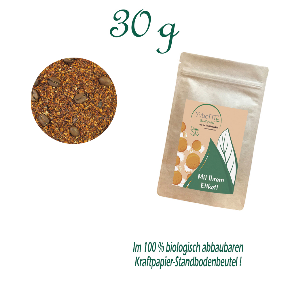 Rotbuschtee LATTE MACCHIATO - Verpackung: Standbodenbeutel Small, Kraftpapier, Inhalt 30 g