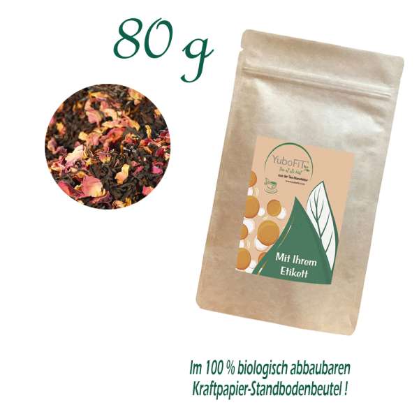Schwarzer Tee THE SKY IS RED - Verpackung: Standbodenbeutel Medium Plus, Kraftpapier, aluminiumfrei, Inhalt 80 g