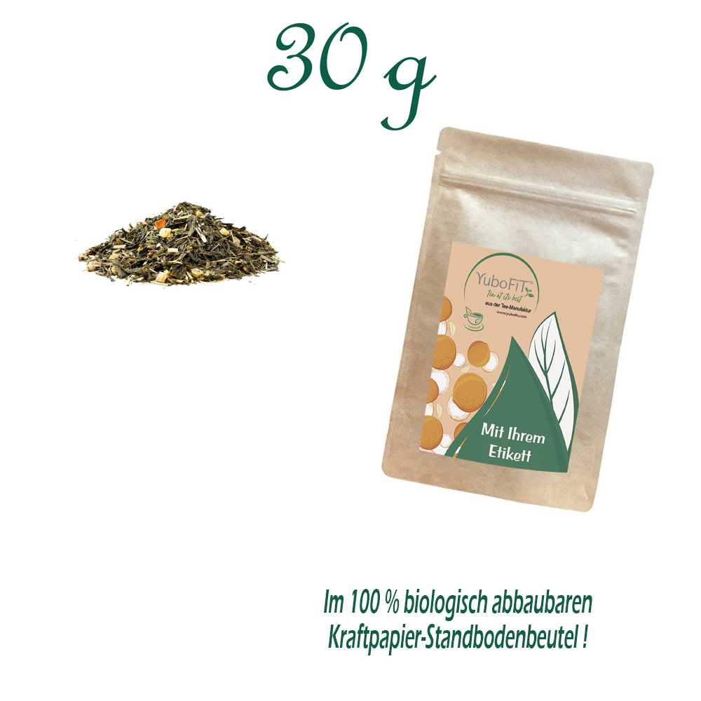 Sencha Ananas-Ingwer Fresh Tee - Verpackung: Standbodenbeutel Small, Kraftpapier, Inhalt 30 g