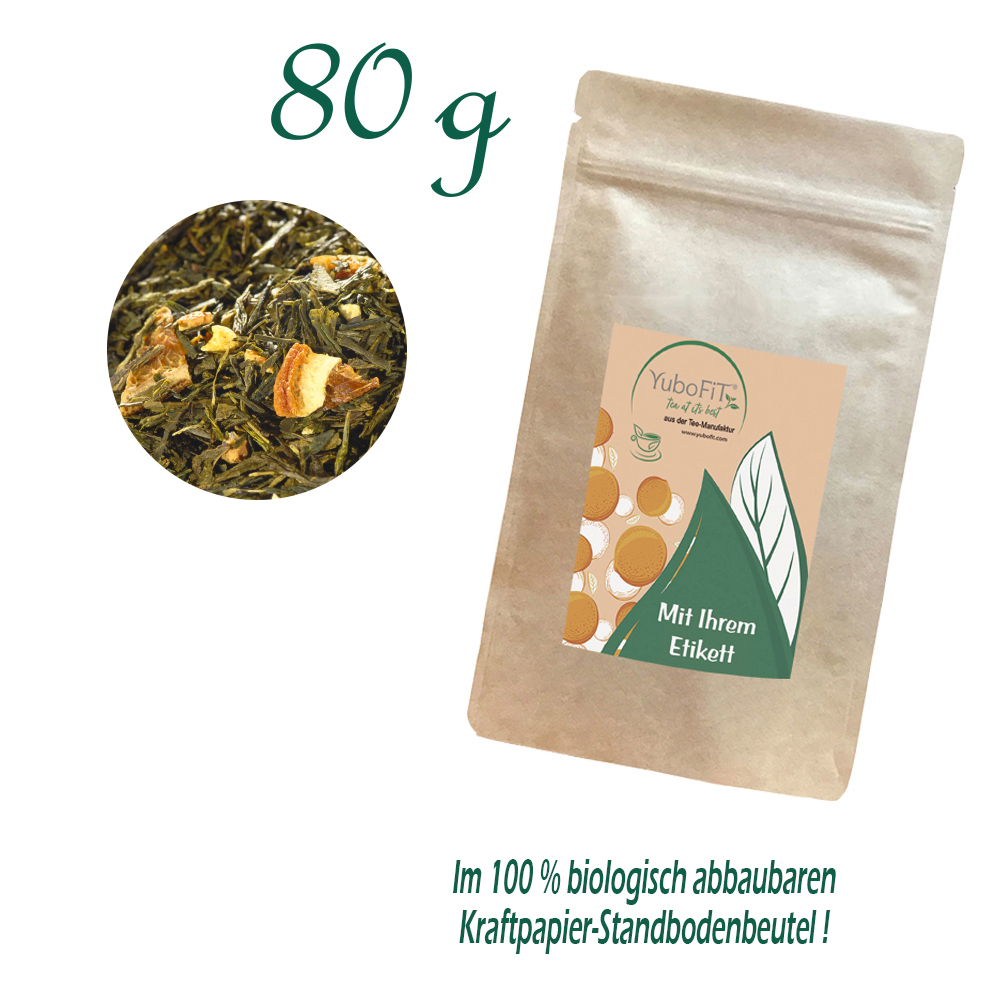 Grüner Tee (84%), Orangenecken (8%), natürliches Orangen-Aroma, Orangenschalen (2%), Orangengranulat (2%) (Orangensaftkonzentrat, Orangenzellen).