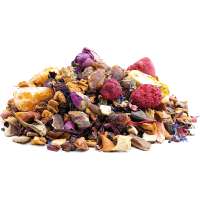Zutaten: Schwarzer Tee (67%), Sultaninen, Aroma, Kardamom (3%), Erdbeerstücke, Himbeerstücke, Erdbeerblätter, rote Johannisbeeren, natürliches Aroma.