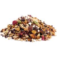 Zutaten: Schwarzer Tee (44%), gerösteter Buchweizen (14%), Grüner Tee (10%), Erdmandelflocken (10%), Zimtstücke, Orangenschalen, Aroma, Galgantwurzel-Pulver, Kardamom, natürliches Kaffirlimettenblätter-Aroma, natürliches Aroma.